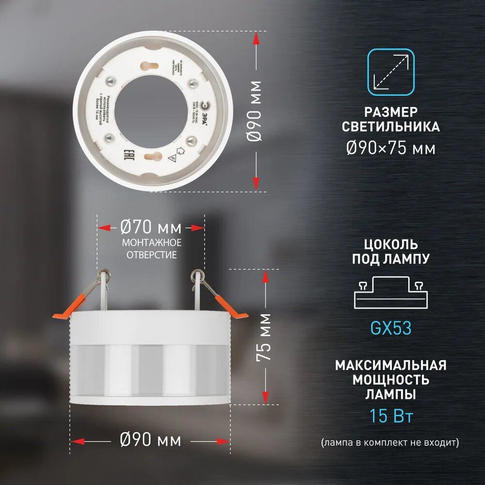 ЭРА Встраиваемый светильник под лампу GX53KL82 WH белый, Б0049011