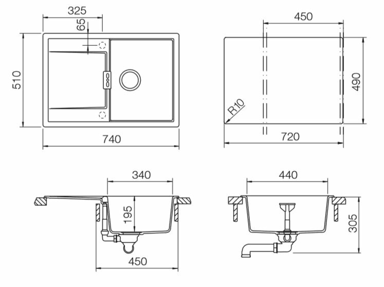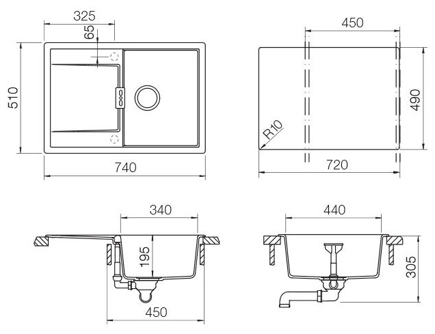 Врезная гранитная кухонная мойка 45 см, Eton 45D Schock Шок, аворио