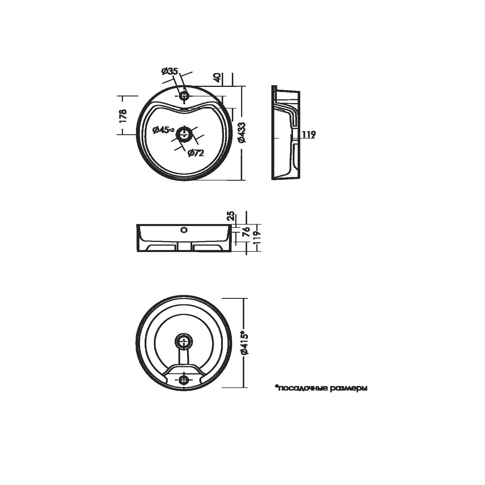 | Дополнительная информация | Комплектация: Умывальник, заглушка для перелива |