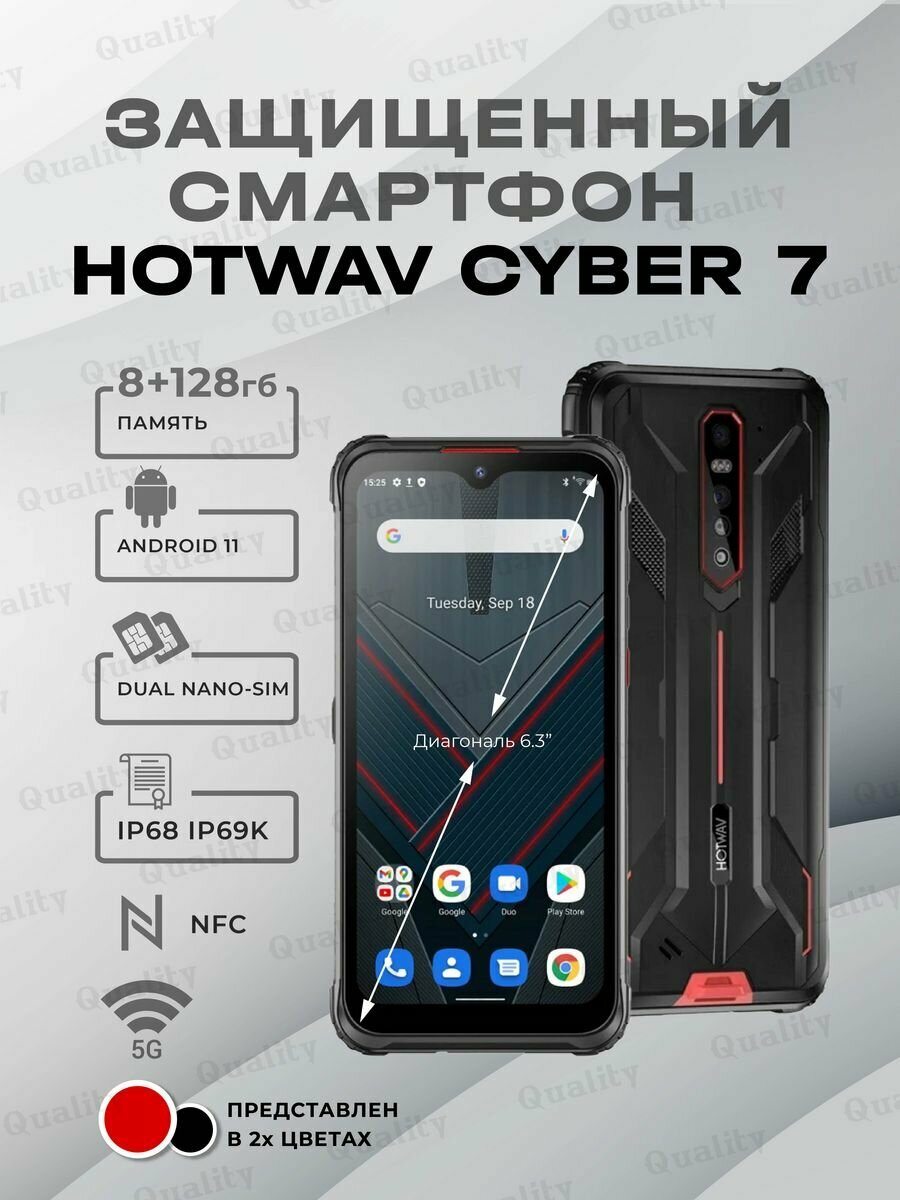 Смартфон Hotwav cyber 7, 8/128ГБ, global, Global Version, Hotwav, cyber 7, Смартфон, Черный, 8ГБ, 128ГБ, global, новый