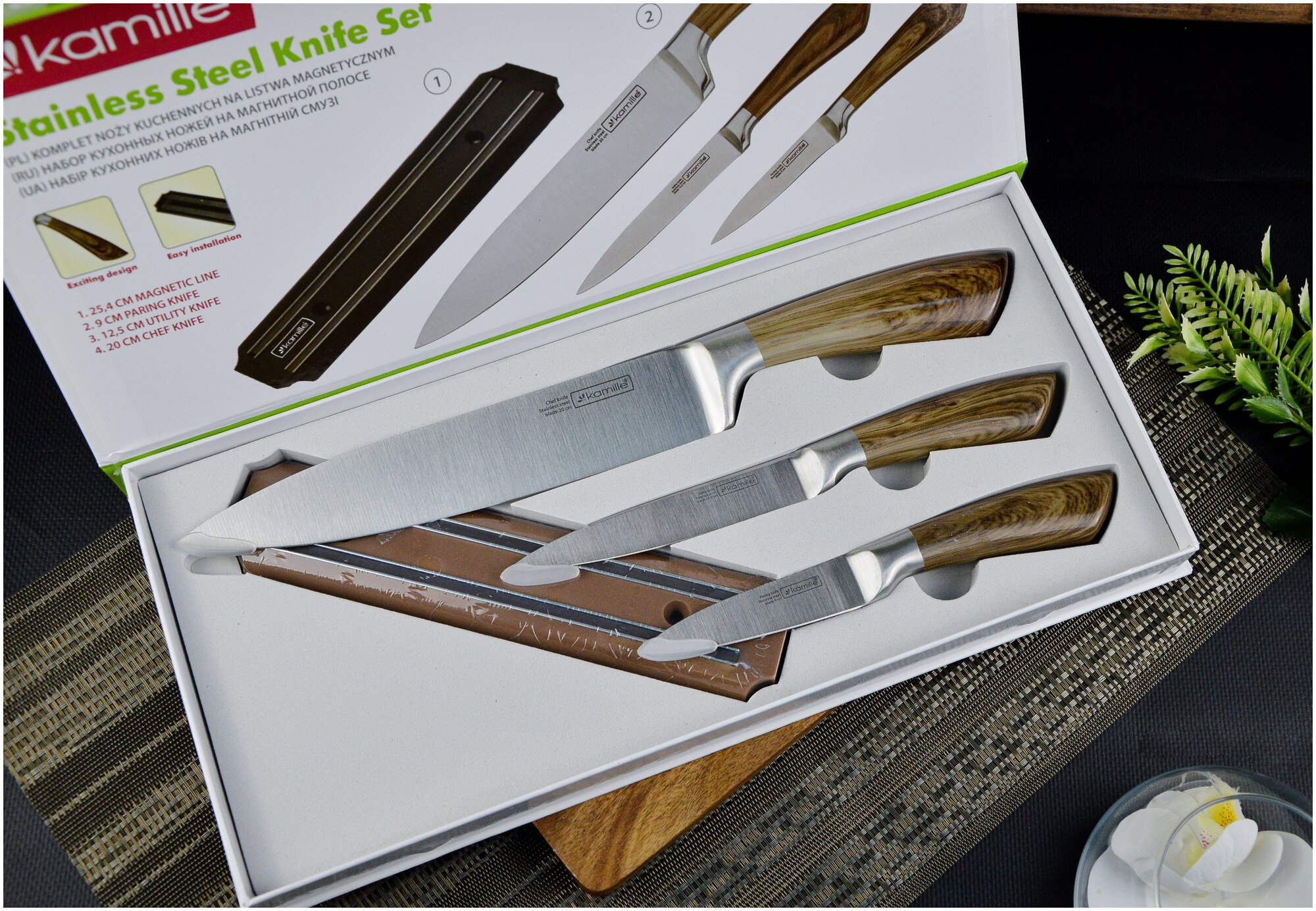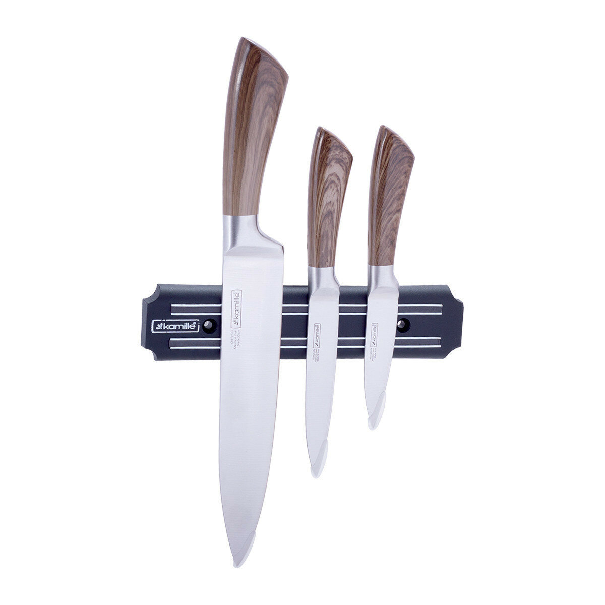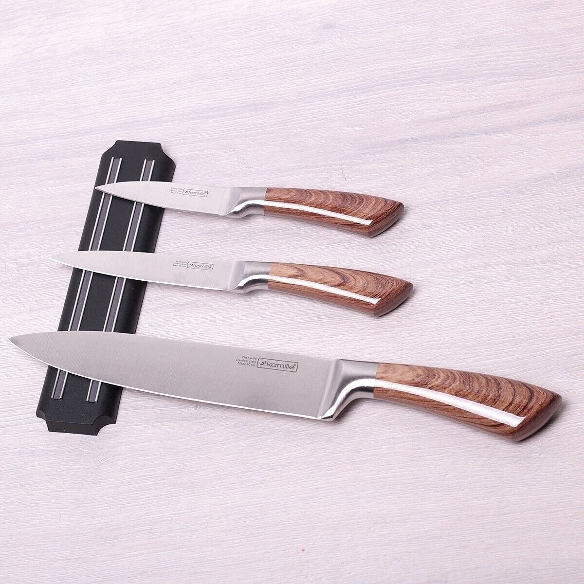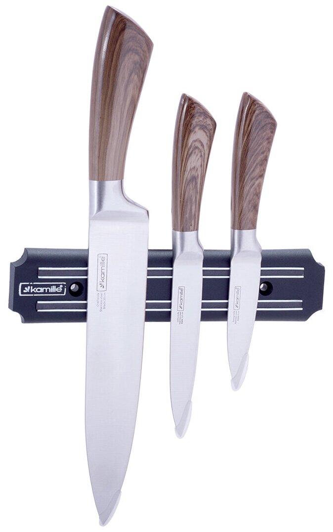 Купить Набор кухонных ножей на магнитной планке Kamille КМ-5042 (3 ножа, магнитный настенный держатель)