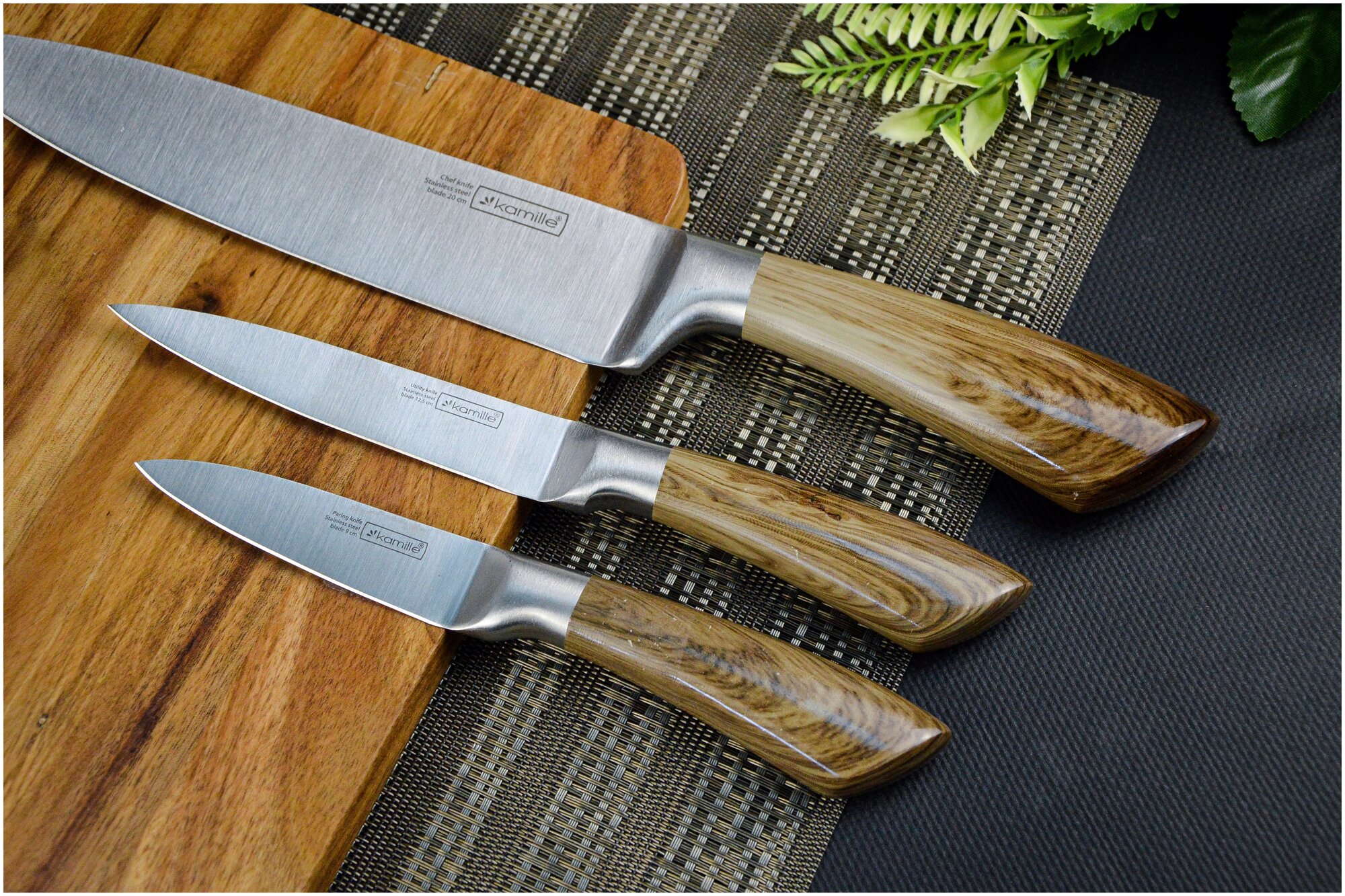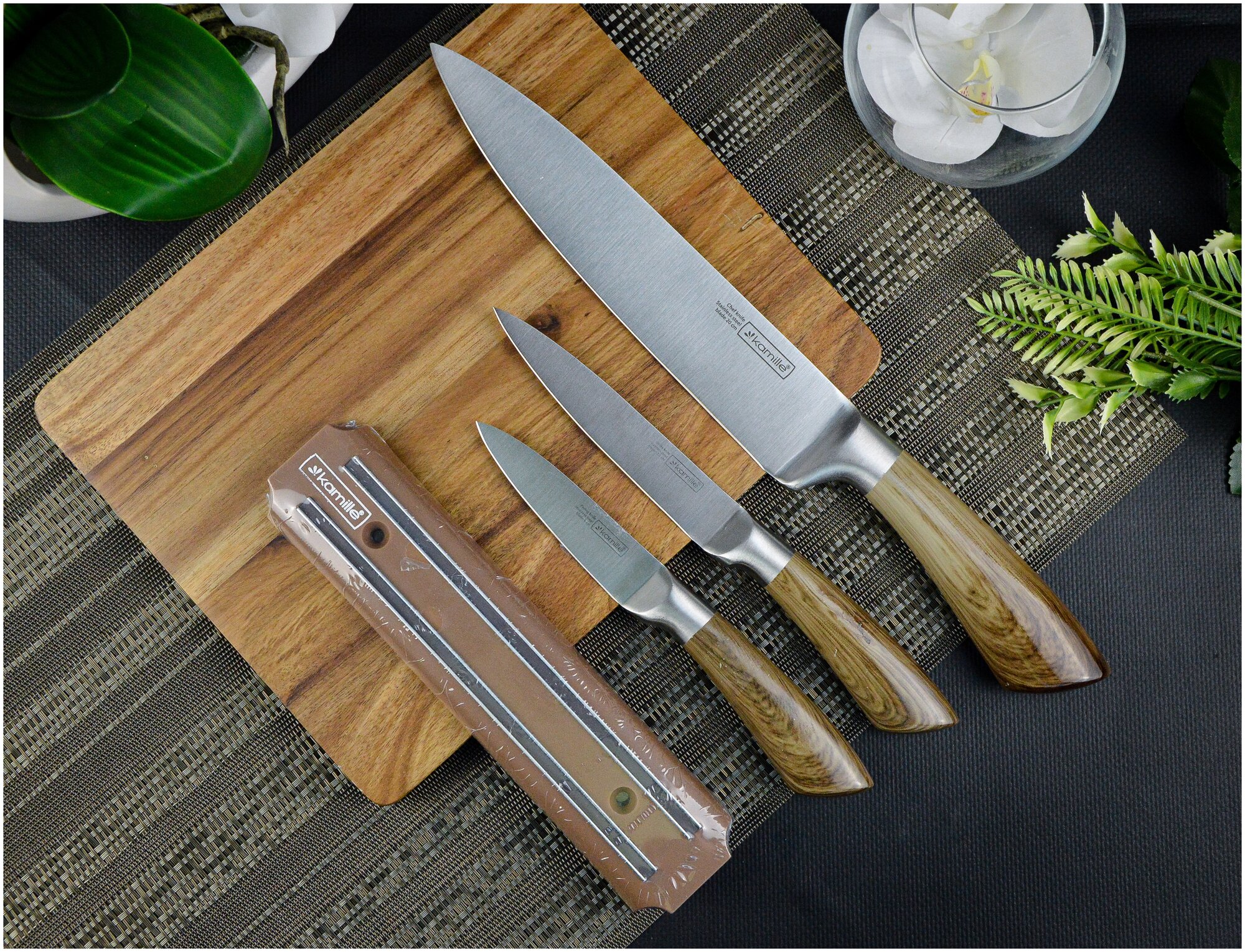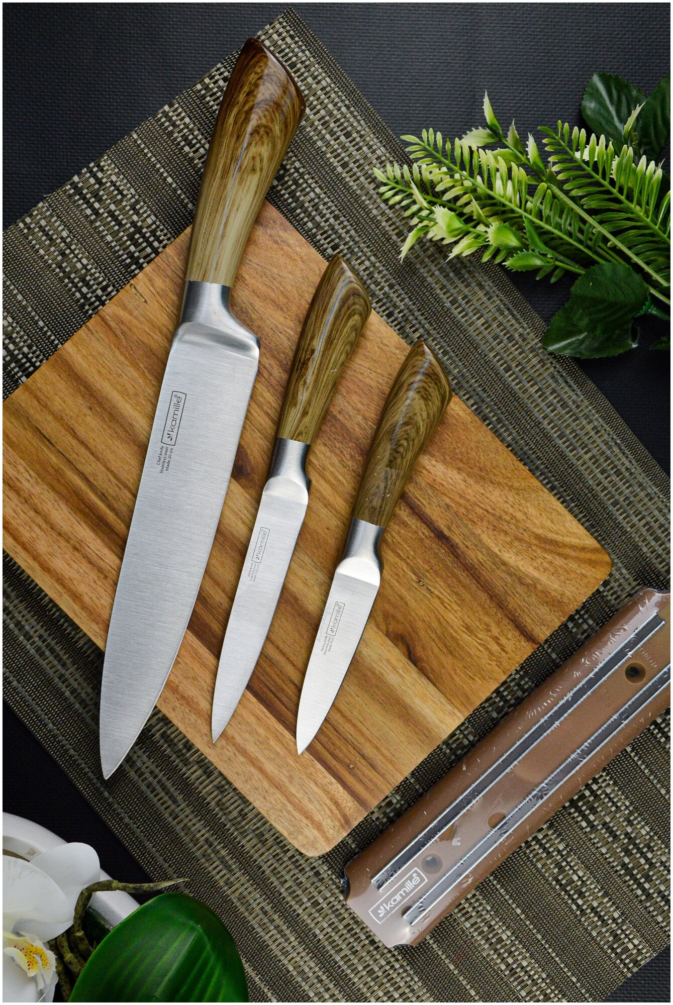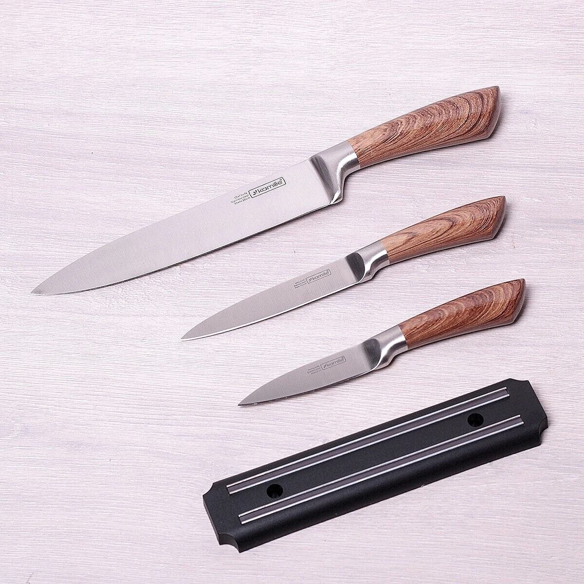 Купить Набор кухонных ножей на магнитной планке Kamille КМ-5042 (3 ножа, магнитный настенный держатель)