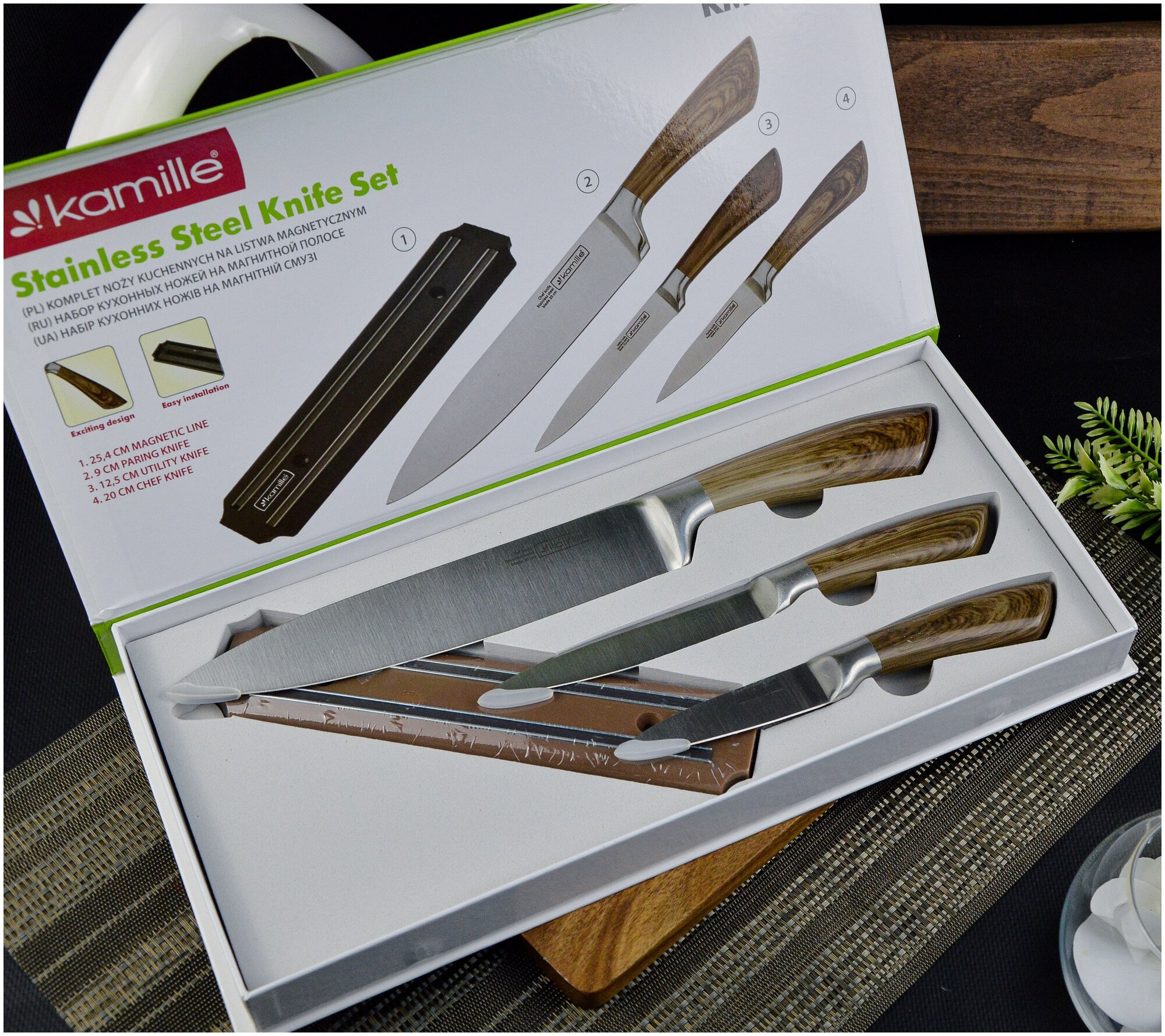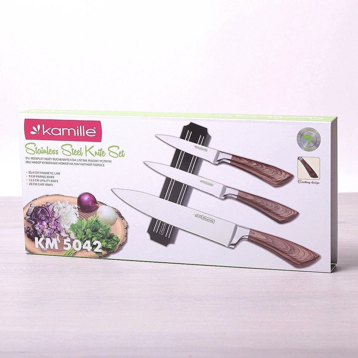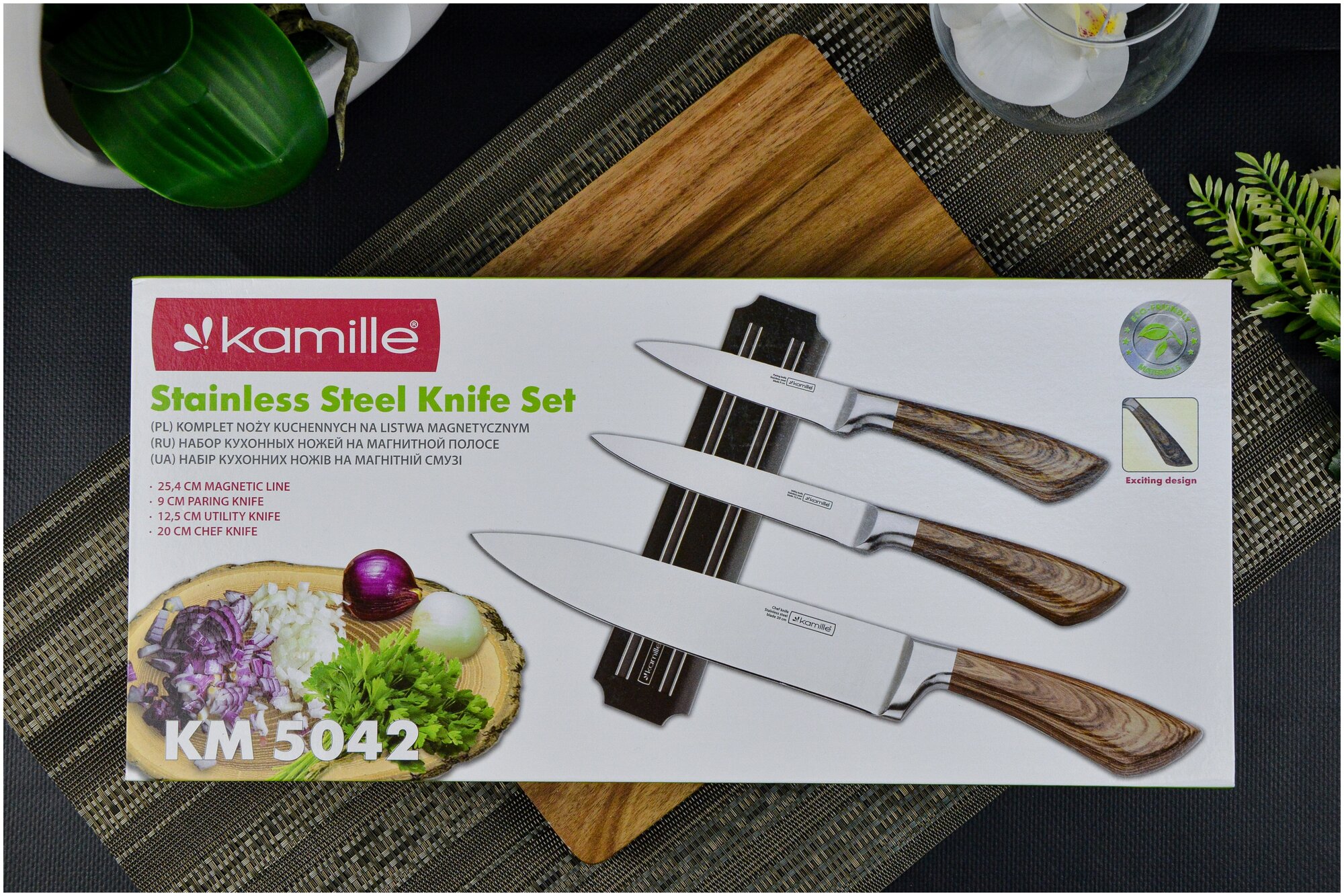 Набор кухонных ножей на магнитной планке КМ-5042 Kamille (3 ножа + держатель) ORIGINAL
