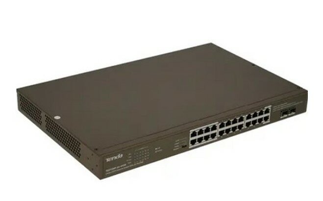 Tenda TEG1126P-24-410W Неуправляемый гигабитный PoE коммутатор, 24 порта, 2 SFP порта, 410Вт