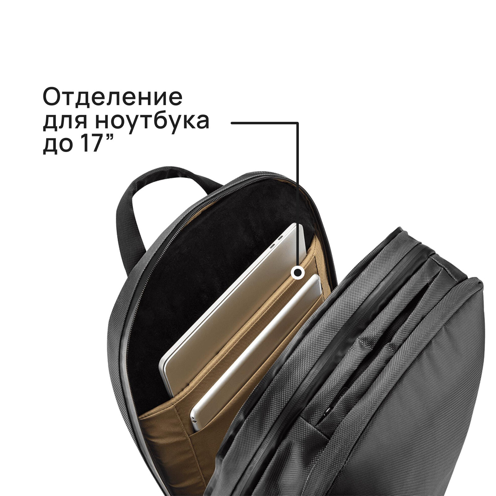 Ноутбук влезает отлично, остается куча места. Много всяких кармашков и отделений. |
