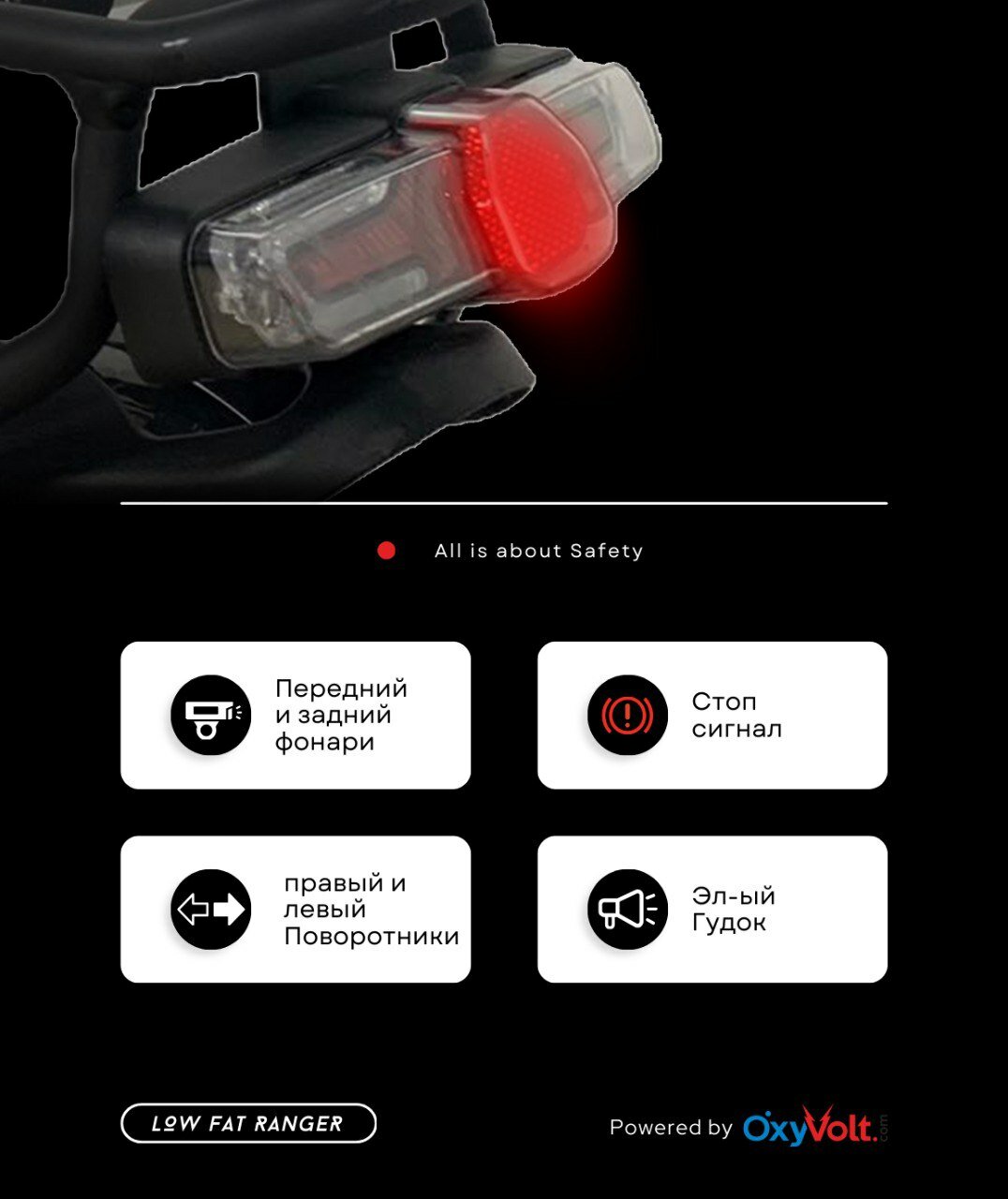 | Отзыв: | Oxyvolt Low Fat Ranger – это мой первый электровелосипед. Долго выбирал модель, и не пожалел, что остановился на этом варианте. Прочный, стильный, с хорошим запасом хода. Редукторный мотор, едет в горку. Очень удобно, что есть несколько режимов езды, которые позволяют подобрать оптимальный вариант для каждой поездки. |