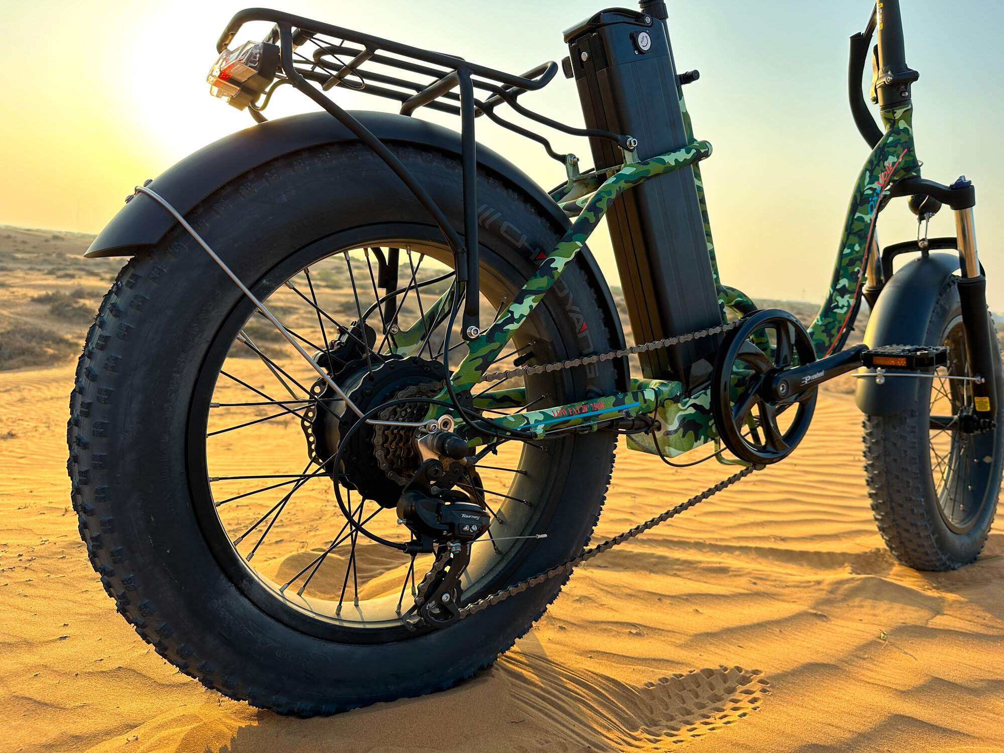 Электровелосипед OxyVolt "Low Fat Ranger" 750Вт, 48В, 18Ач, гидравлика, фэтбайк, складной, 20 дюймов, камуфляж