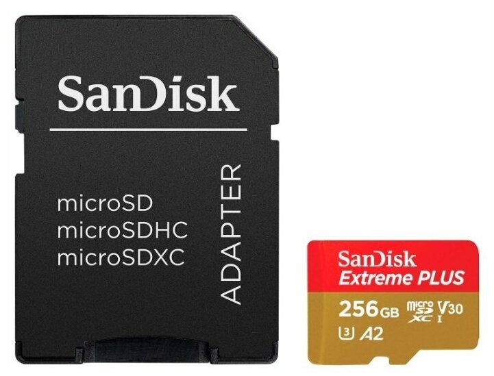 Карта памяти MicroSDXC 256GB SanDisk Class 10 Extreme Plus A2 V30 UHS-I U3 (170 Mb/s) +SD адаптер