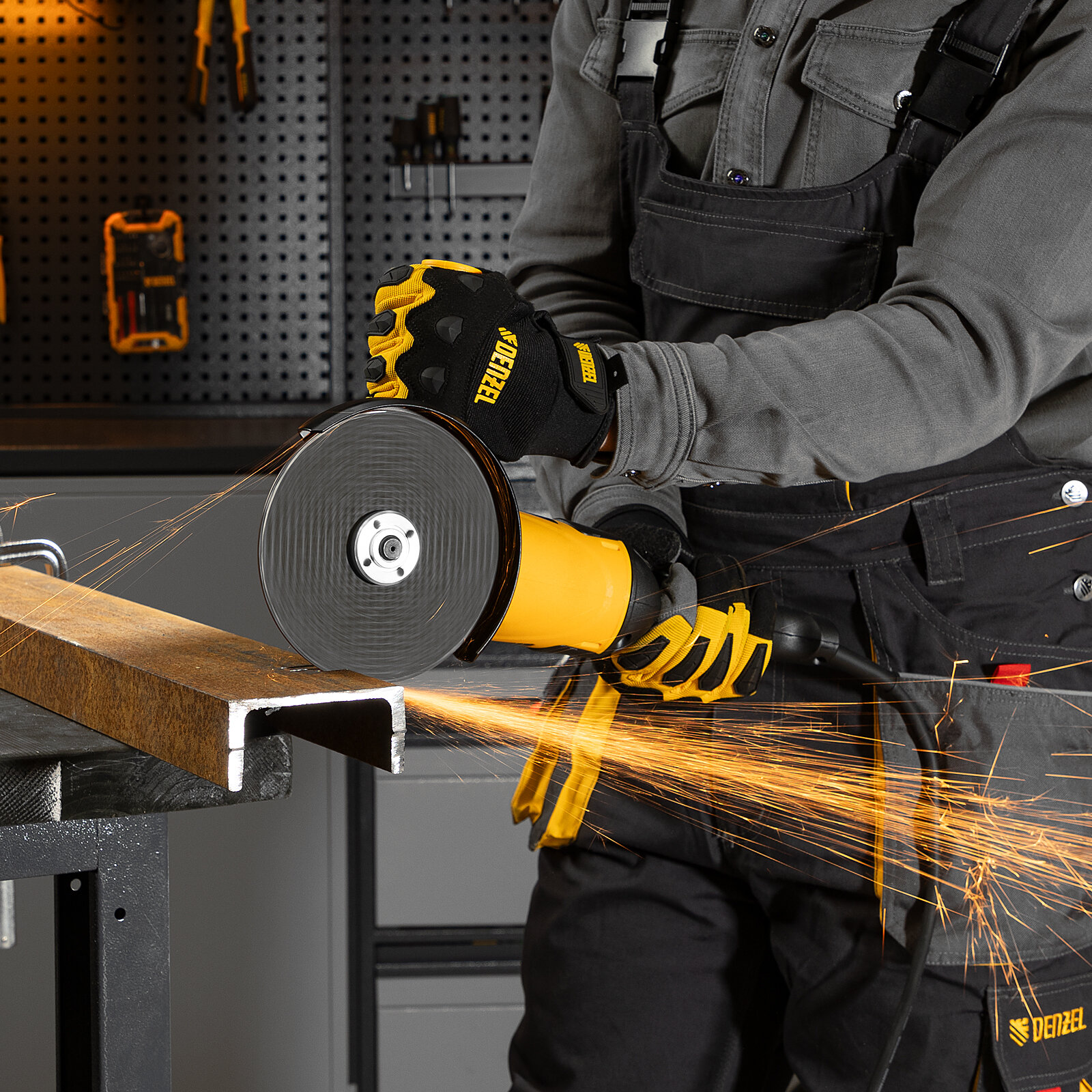 УШМ Denzel AG150-1500, с антивибрационной системой, желтый/черный, 1500Вт, 150мм
