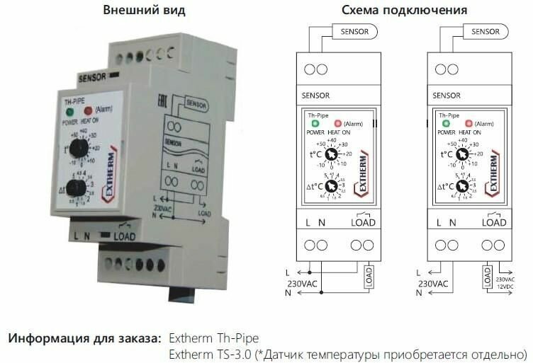 Термостат для управления системой электрообогрева на трубопроводах/резервуарах с настраиваемым гистерезисом EXTHERM Th-pipe