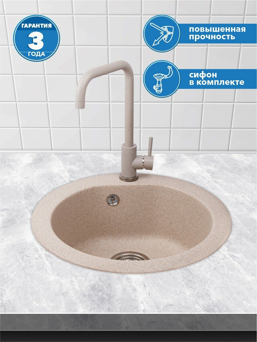 Мойка кухонная из искусственного камня BEST песочный 640х500 mm, AV Engineering