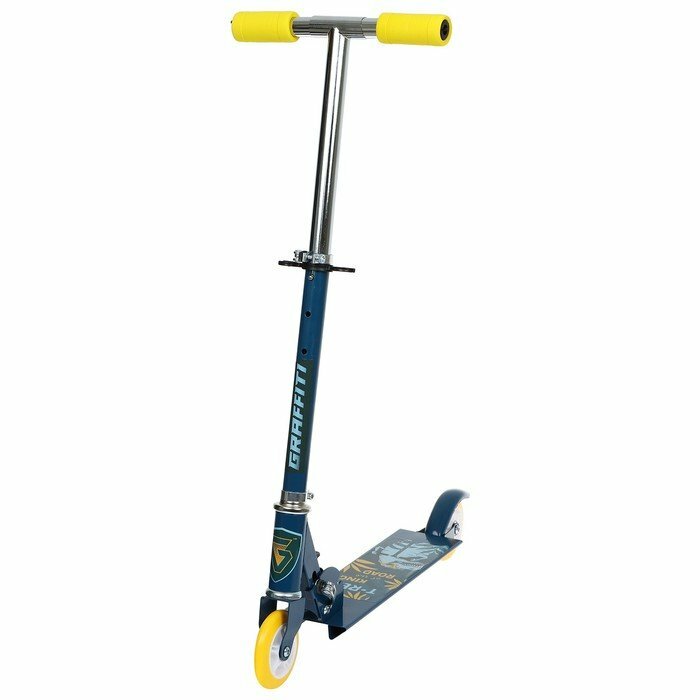 Самокат GRAFFITI, складной, колёса PVC, диаметр колес 100 мм, цвет синий, желтый