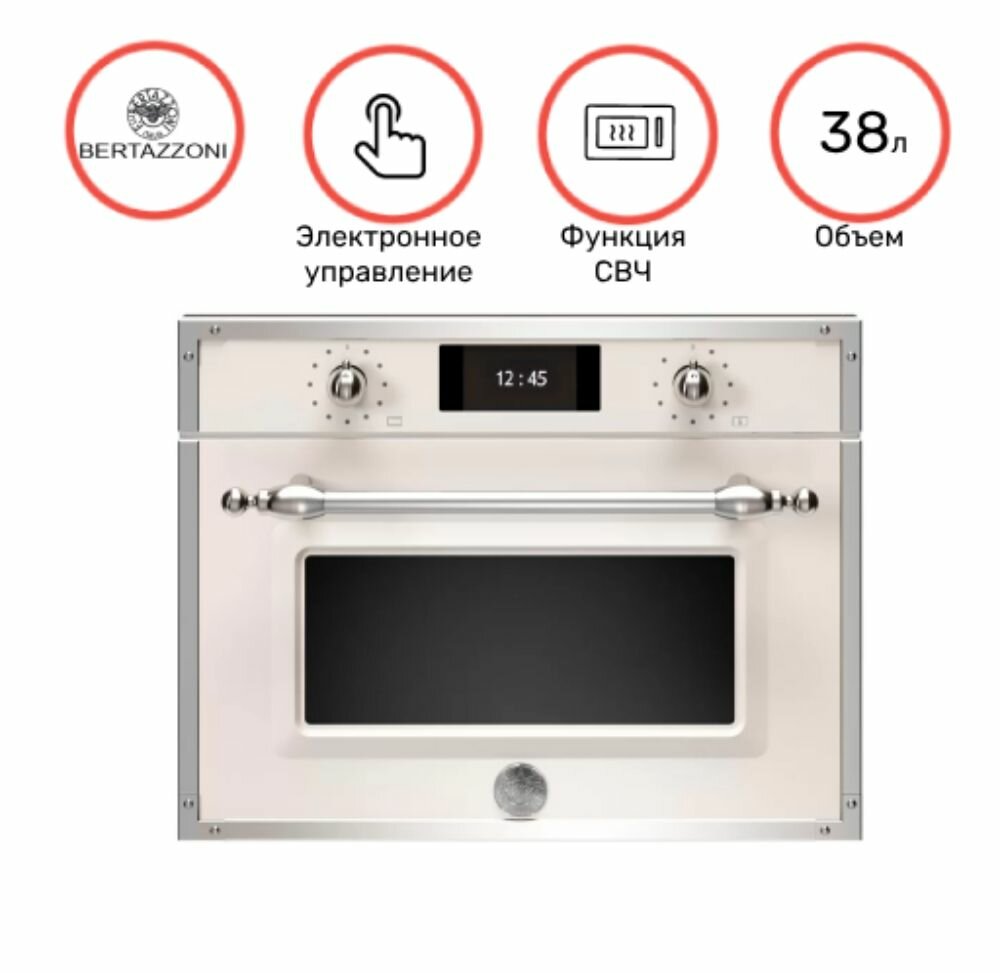 F457HERMWTAX Компактный духовой шкаф Bertazzoni, комбинированный с микроволновой печью, 60x45 см Слоновая кость / хром