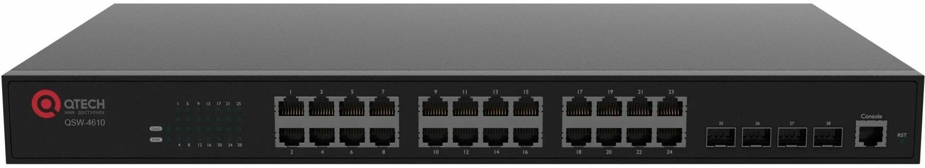 Коммутатор QTECH QSW-4610-28T-POE-AC управляемый L2+ 24 х 10/100/1000BASE-T PoE 4 х 100/1000BASE-X SFP