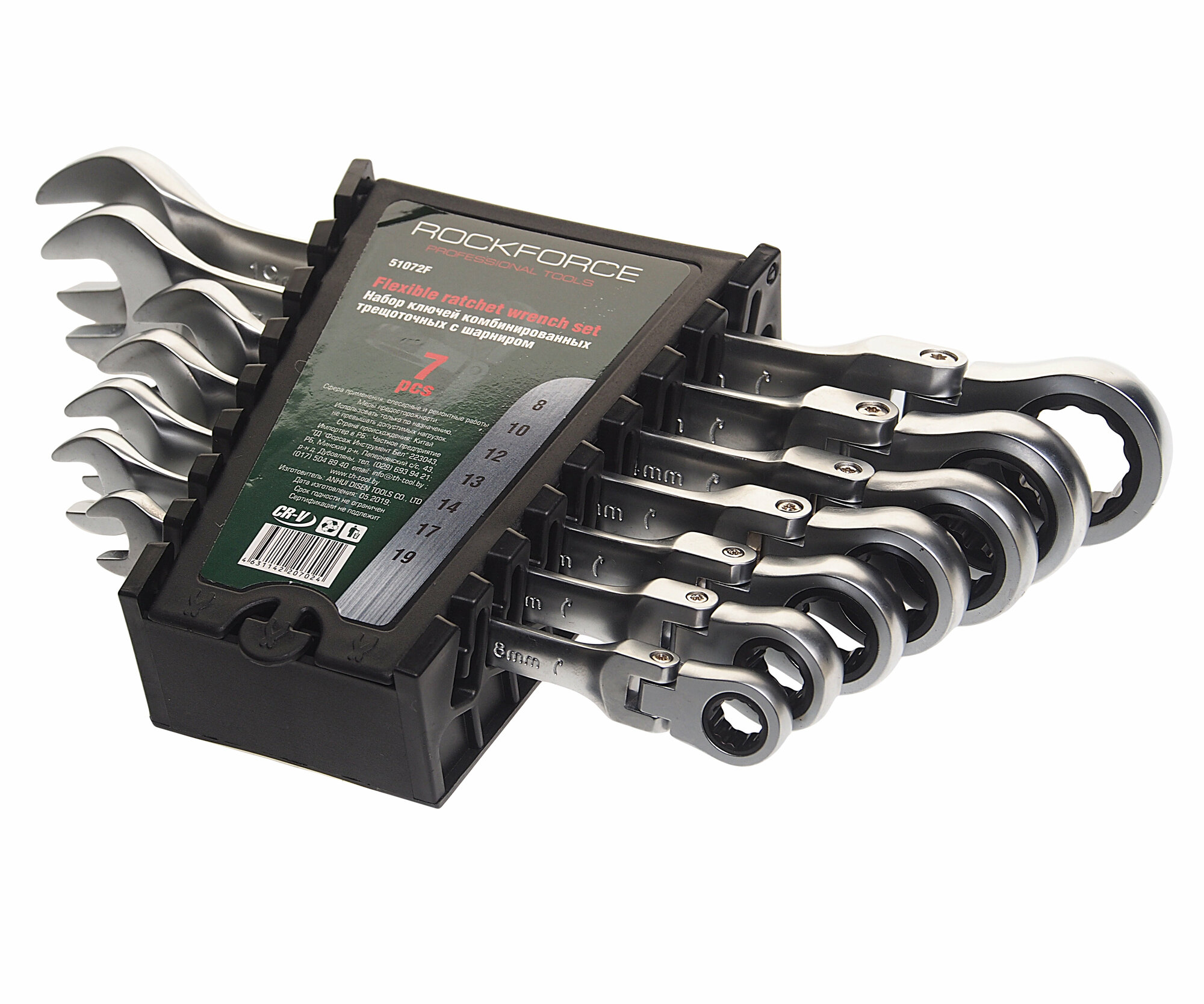 Набор ключей комбинированных трещоточных с шарниром 7пр.(8,10,12,13,14,17,19мм), в пластиковом держ, ROCK FORCE RF51072F (1 шт.)