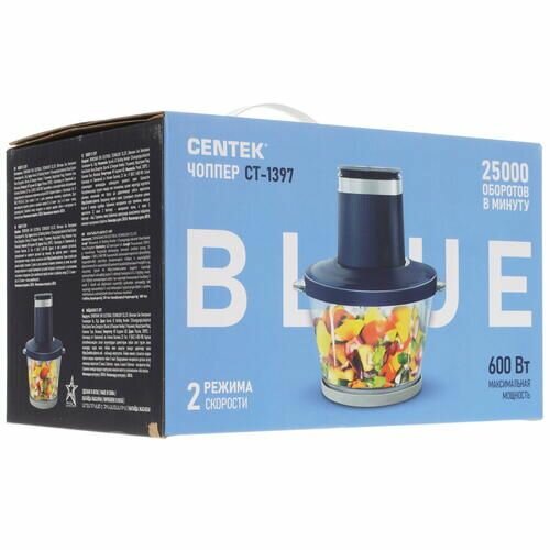 Чоппер Centek CT-1397 Blue <600Вт> 2 скорости, стеклянная чаша 2 л, 4 лезвия, резиновое основание