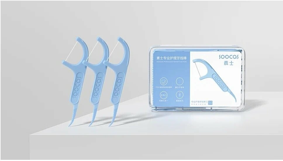 Зубная нить (зубочистки) Soocas Floss Pick (50 штук) Light Blue интересное: