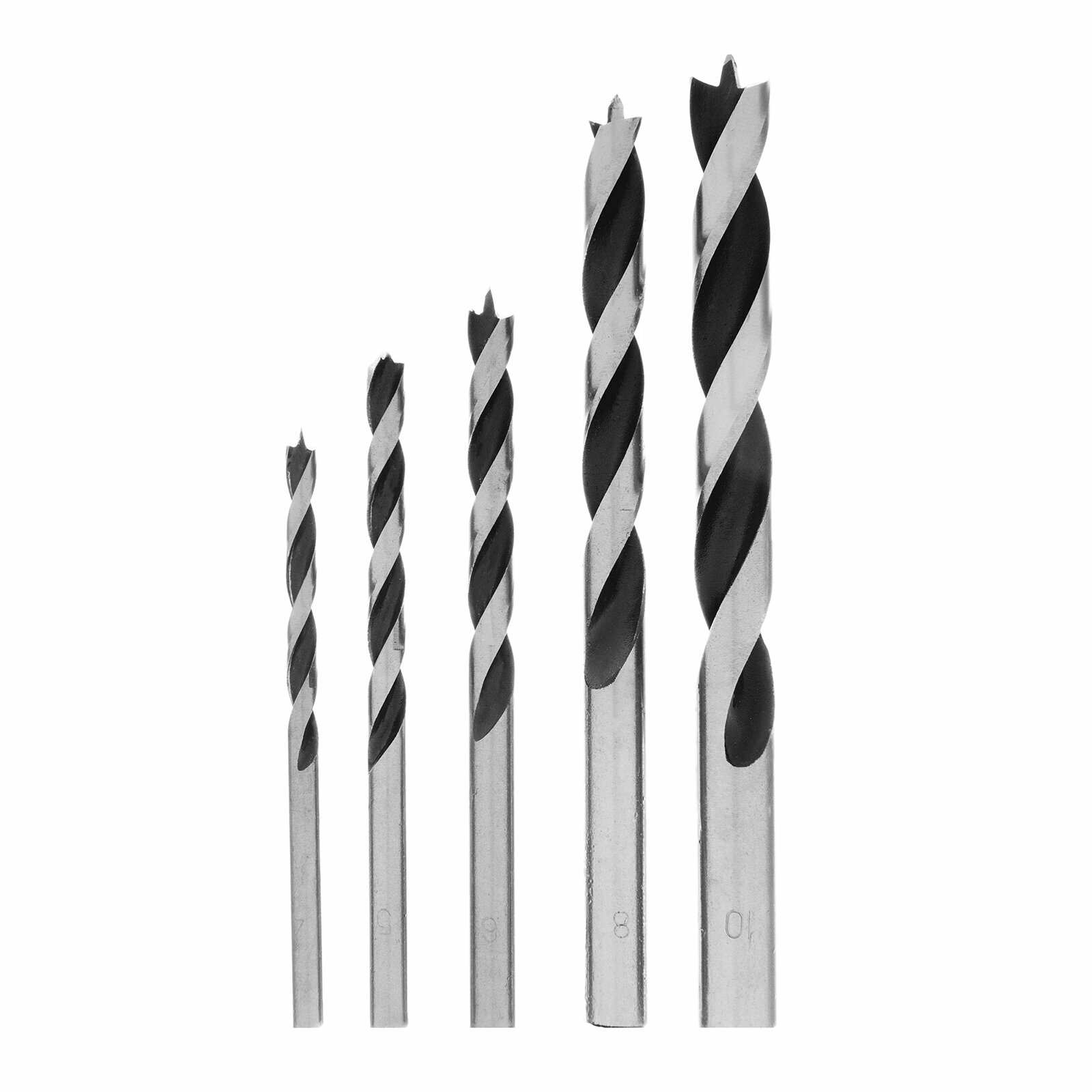 Набор сверл по дереву, 4-5-6-8-10 мм, 5 шт, цилиндрический хвостовиковик, пластиковый кейс, Matrix