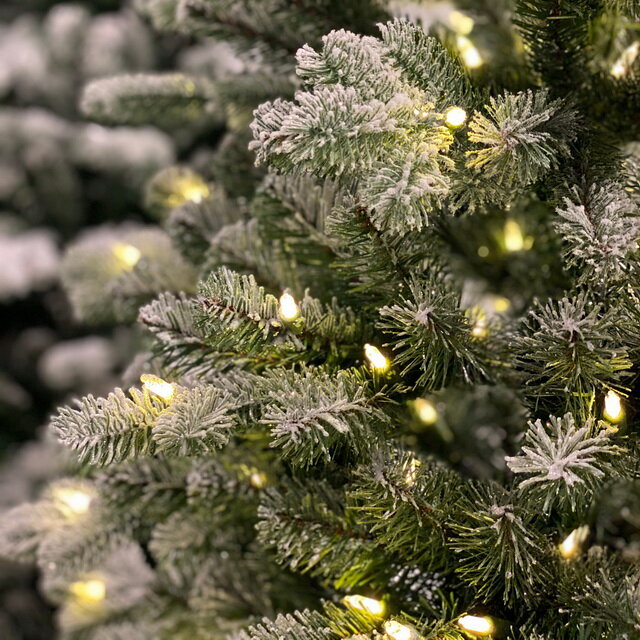 Искусственная ель "Шеффилд" заснеженная, (литая хвоя РЕ+PVC), 450 теплых белых LED ламп, 198 см, National Tree Company