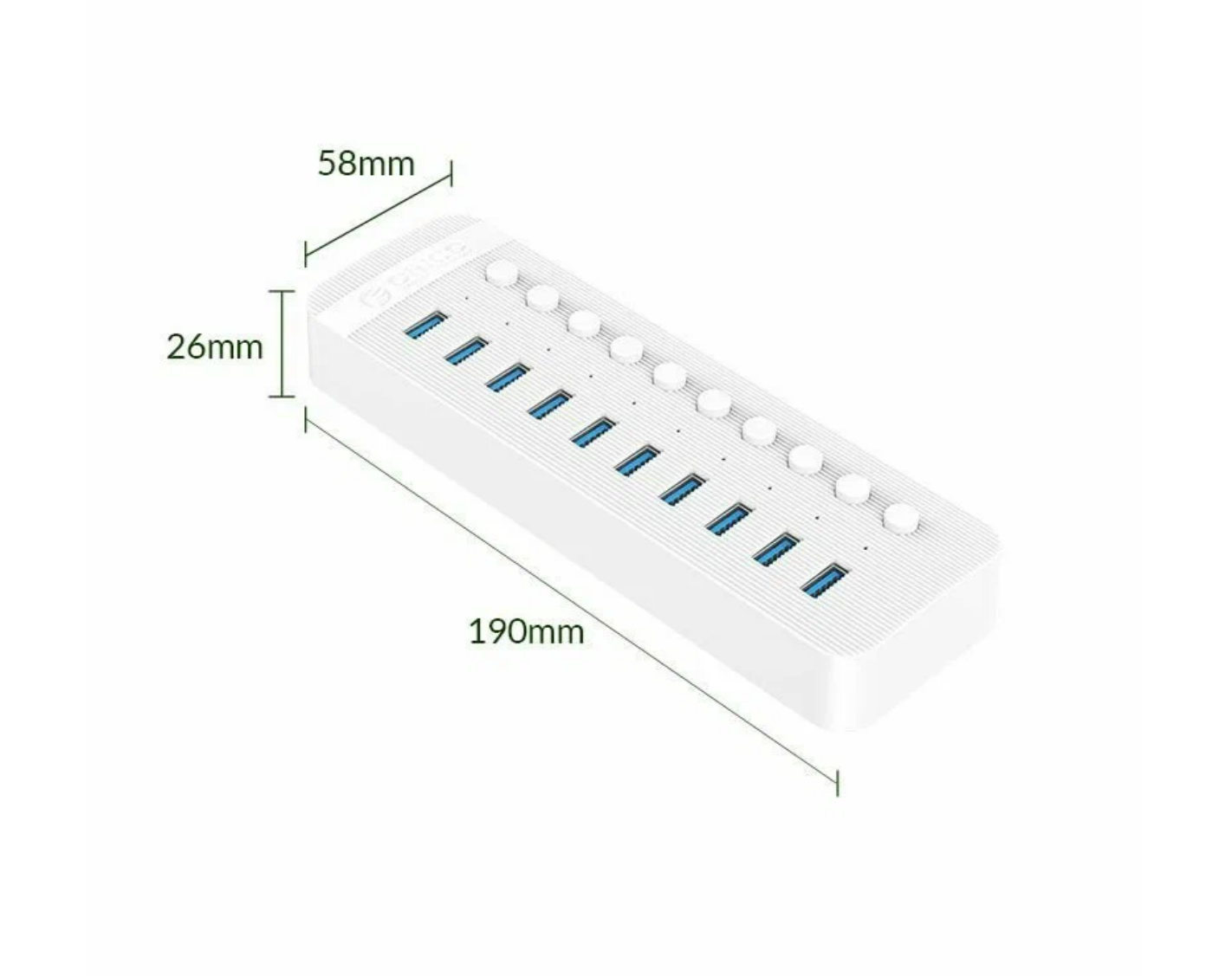 USB-концентратор, на 10xUSB-A 3.0 портов, Orico CT2U3-10AB, белый [ORICO-CT2U3-10AB-EU-WH-BP]