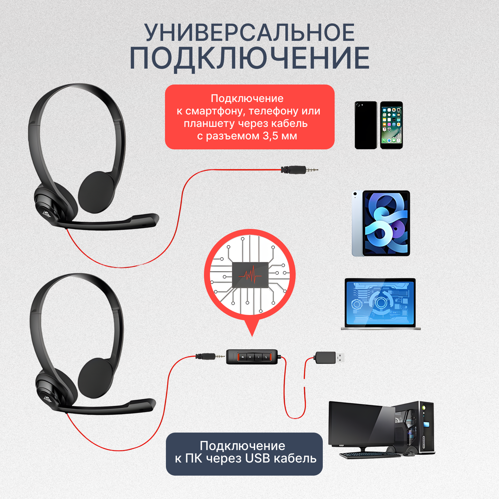 Купить Компьютерная гарнитура с микрофоном NUBWO HW02 Duo, USB, 3,5 мм jack