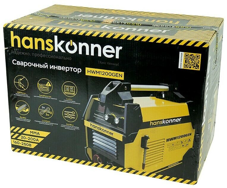 HWM1200GEN Сварочный инвертор 20-200А,ПВ-80%, напр. 160-250 В, работа от генератора, Hanskonner