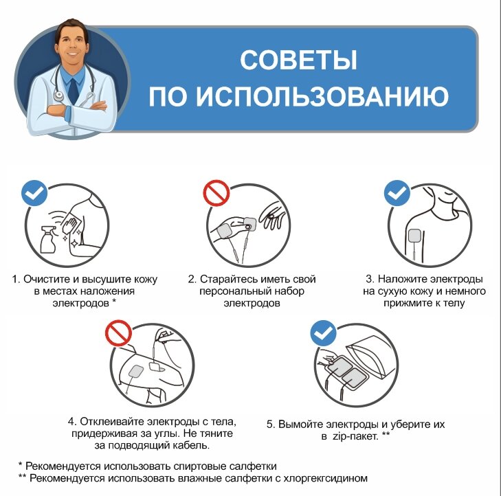 | Отзыв: | Покупал для аппарата нервно-мышечной стимуляции Меркурий, подошли отлично, было очень приятно за небольшой бонус от продавца В виде салфеток и инструкции от продавца |