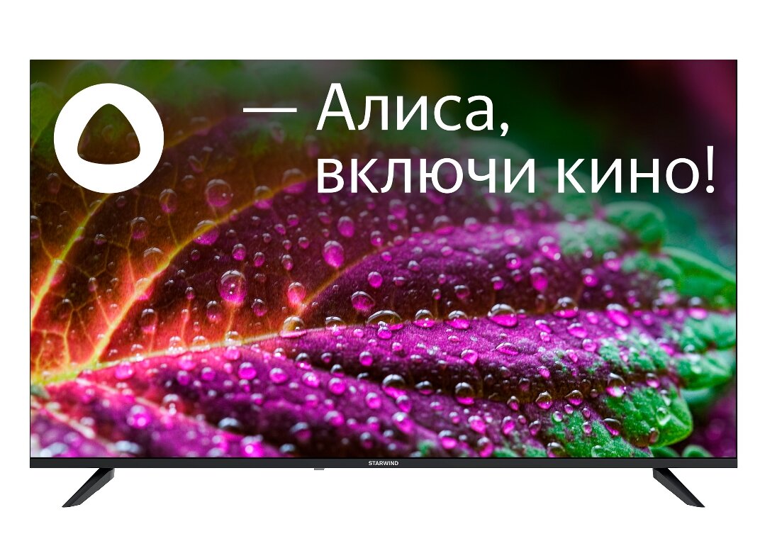 Телевизор LED Starwind 55" SW-LED55UG403 Яндекс.ТВ Frameless черный/4K Ultra HD/60Hz/DVB-T/DVB-T2/DVB-C/DVB-S/DVB-S2/USB/WiFi/Smart TV