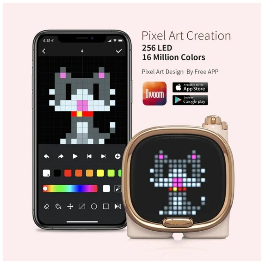 Портативный динамик Divoom Zooe Pixel Art Bluetooth Speaker - Розовый интересное:
