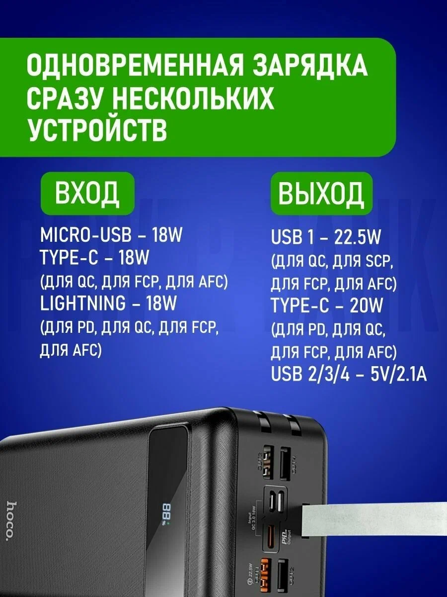 СохранитьДополнительный аккумулятор Power Bank Hoco J86B 60000 (mAh) черный интересное: