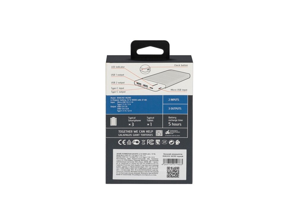 RIVACASE VA2140 (10000 мАч) внешний аккумулятор, черный 12/48 интересное: