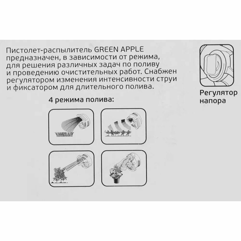 Green Apple GWHM12-039 GREEN APPLE Пистолет-распылитель, пластик, 4 улучшенных режима