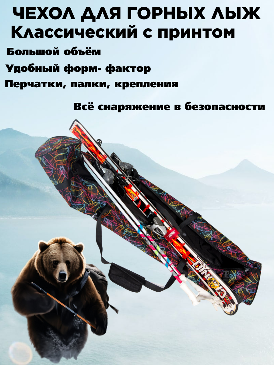 Чехол для горных лыж "Классический с принтом" 155 см. цвет чёрный с принтом интересное: