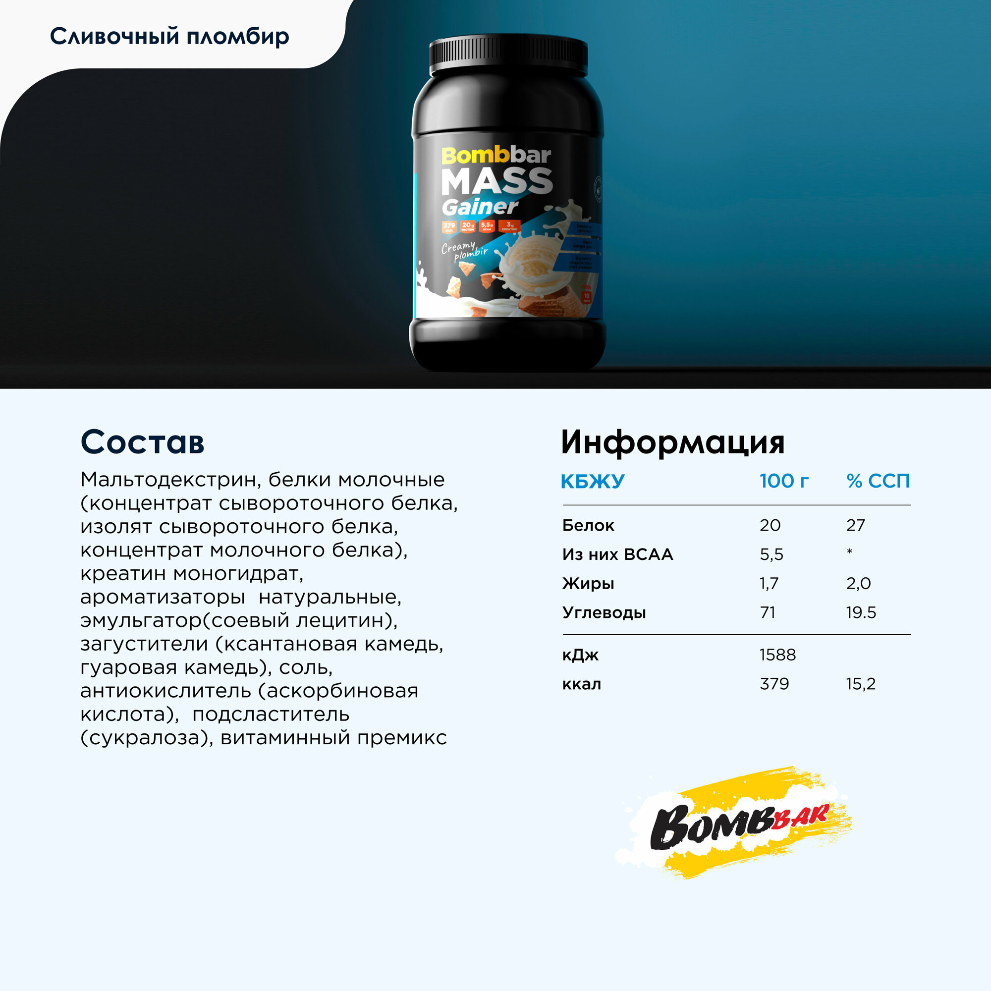 Bombbar Mass Gainer (1000 гр.) Сливочный пломбир интересное: