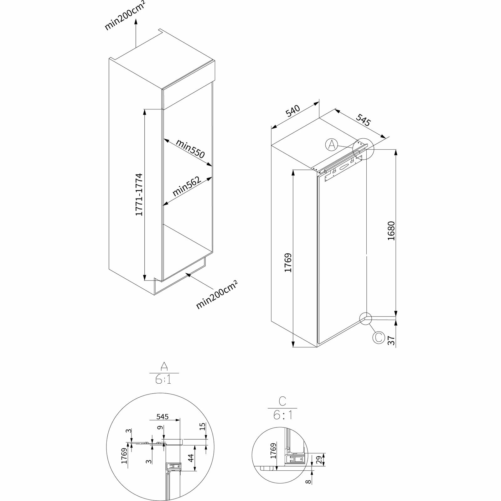 Встраиваемая морозильная камера HIBERG i-FRB 35 NF, инвертор, No Frost, общий объем 250 л, высота 187 см