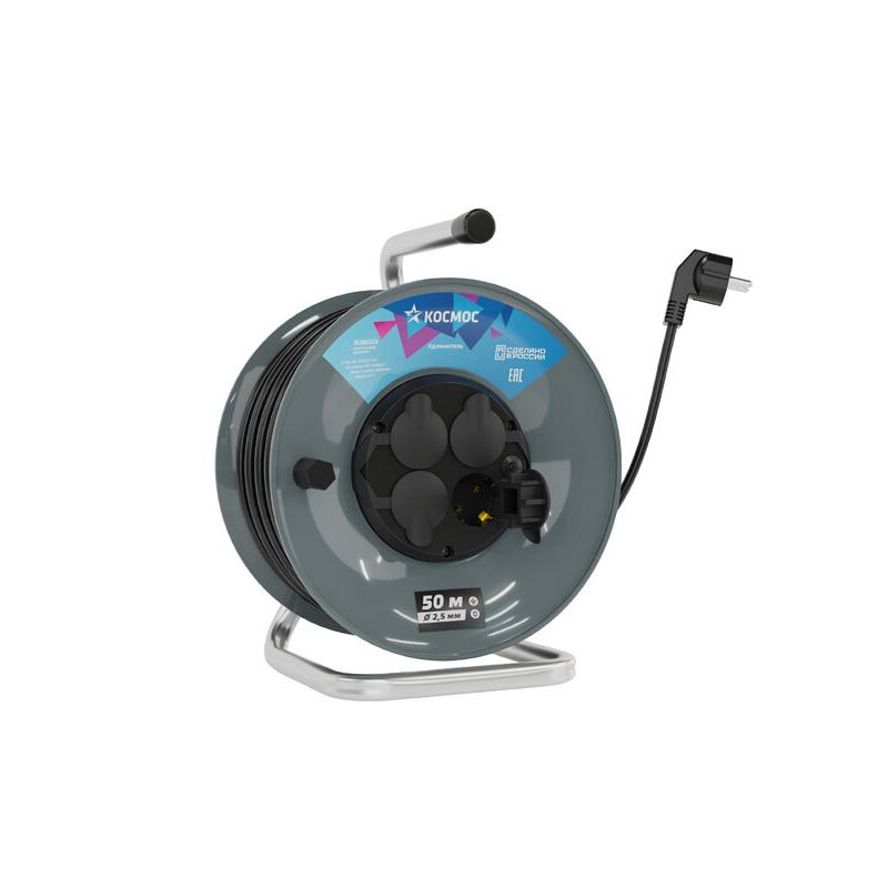 Удлинитель на катушке 4х50м с заземл. 16А IP20 3.5кВт ПВС 3х1.5, космос YKKSM50M-4G-Z(16A) (1 шт.)