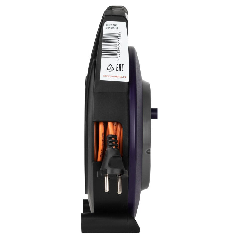 ЭРА Удлинитель 4-мест 20м ПВС 2*0,75 черный катушка IP20 ЭРА в закрытом корпусе