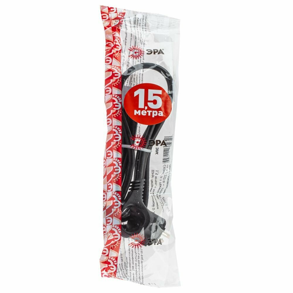 Купить Шнур сетевой с вилкой U-3x1,5-1,5m-B с заземлением 1,5м ПВС 3x1,5мм2 черный, ЭРА Б0048705 (1 шт.)