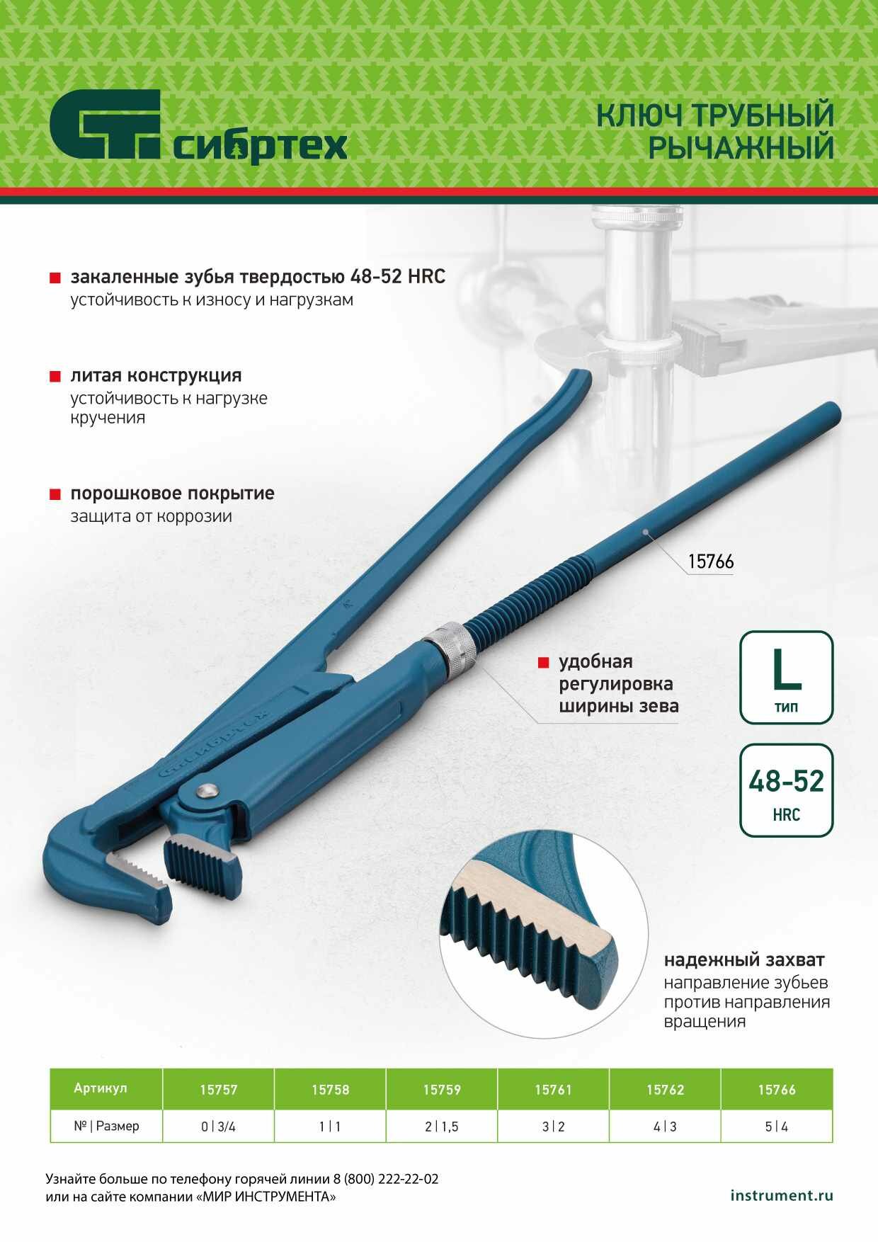 СохранитьСибртех Ключ трубный рычажный №4 15762 интересное: