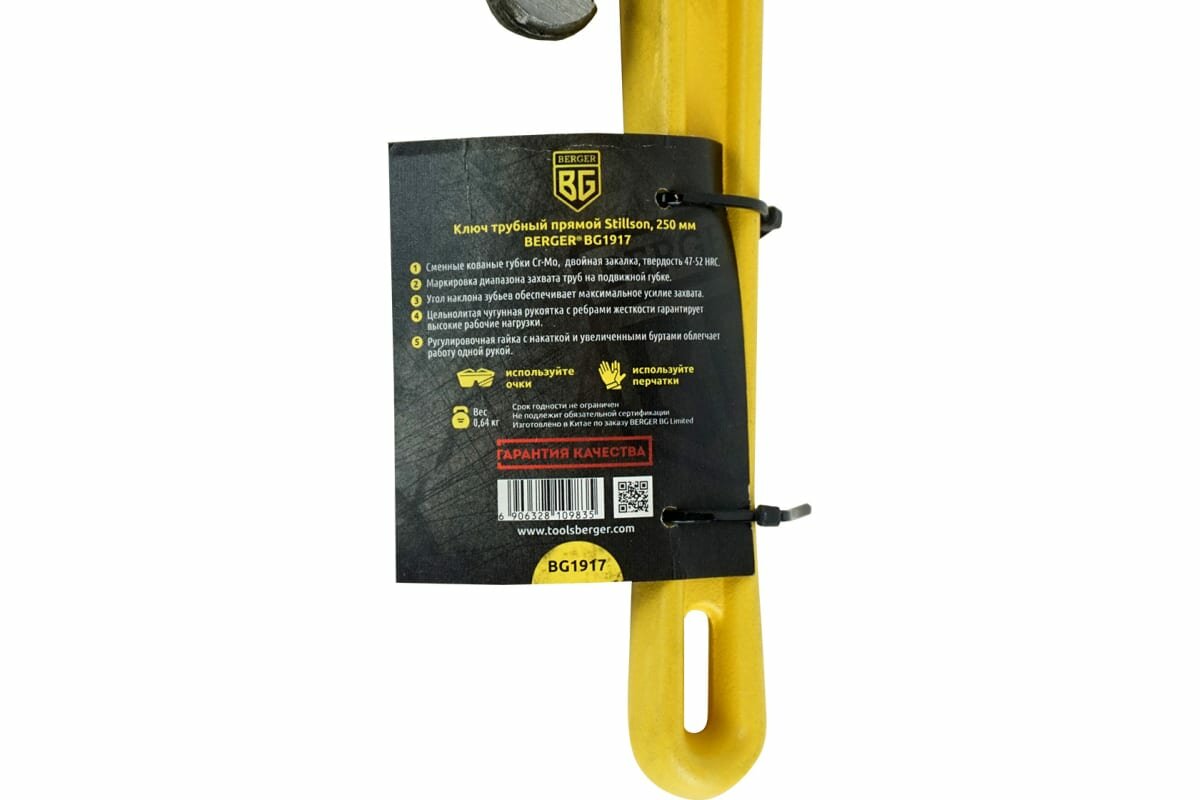 Ключ трубный прямой BERGER BG1917 Stillson, 245-290 мм, 1 1/2", Cr-Mo / чугун (BERGER)