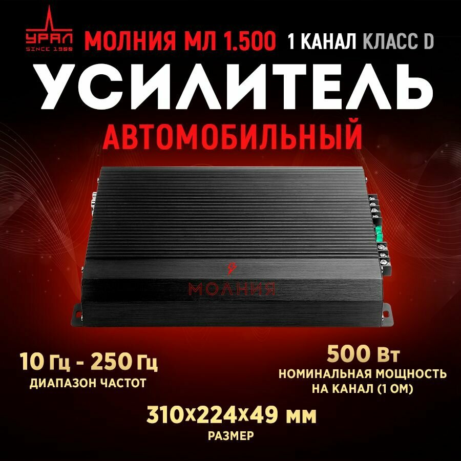 Усилитель автомобильный Ural Молния МЛ 1.500 одноканальный МЛ 1.500