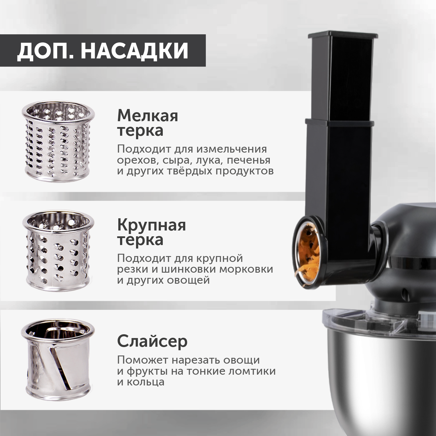 Купить Кухонный комбайн RageX R101 с планетарным миксером, импульсный режим, 4.5 л, 1500 Вт, железно-серый