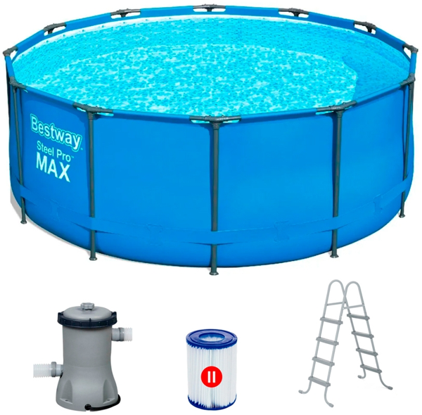 Каркасный бассейн Bestway Steel Pro MAX 366х122 см + фильтр-насос 2006 л/ч, лестница (5614S BW)