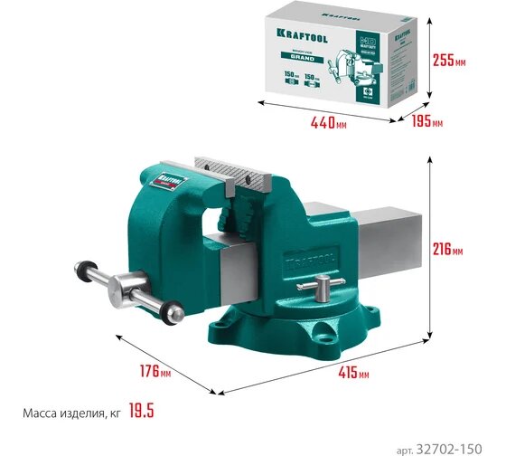 KRAFTOOL GRAND, 150 мм, слесарные тиски (32702-150)