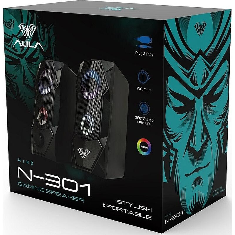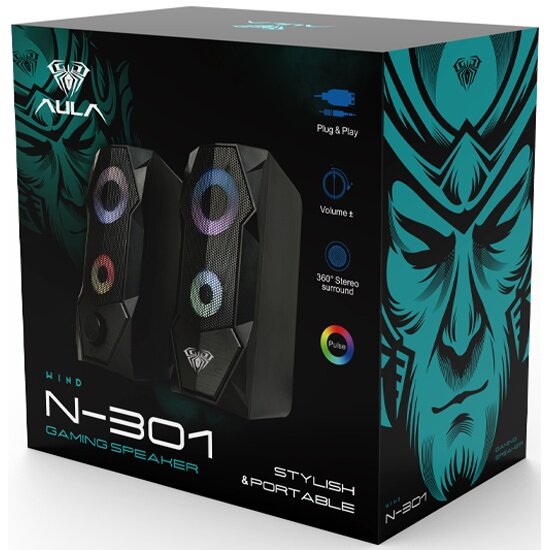 Колонки 2.0 AULA N-301 3,5 мм, AUX, питание USB, подсветка