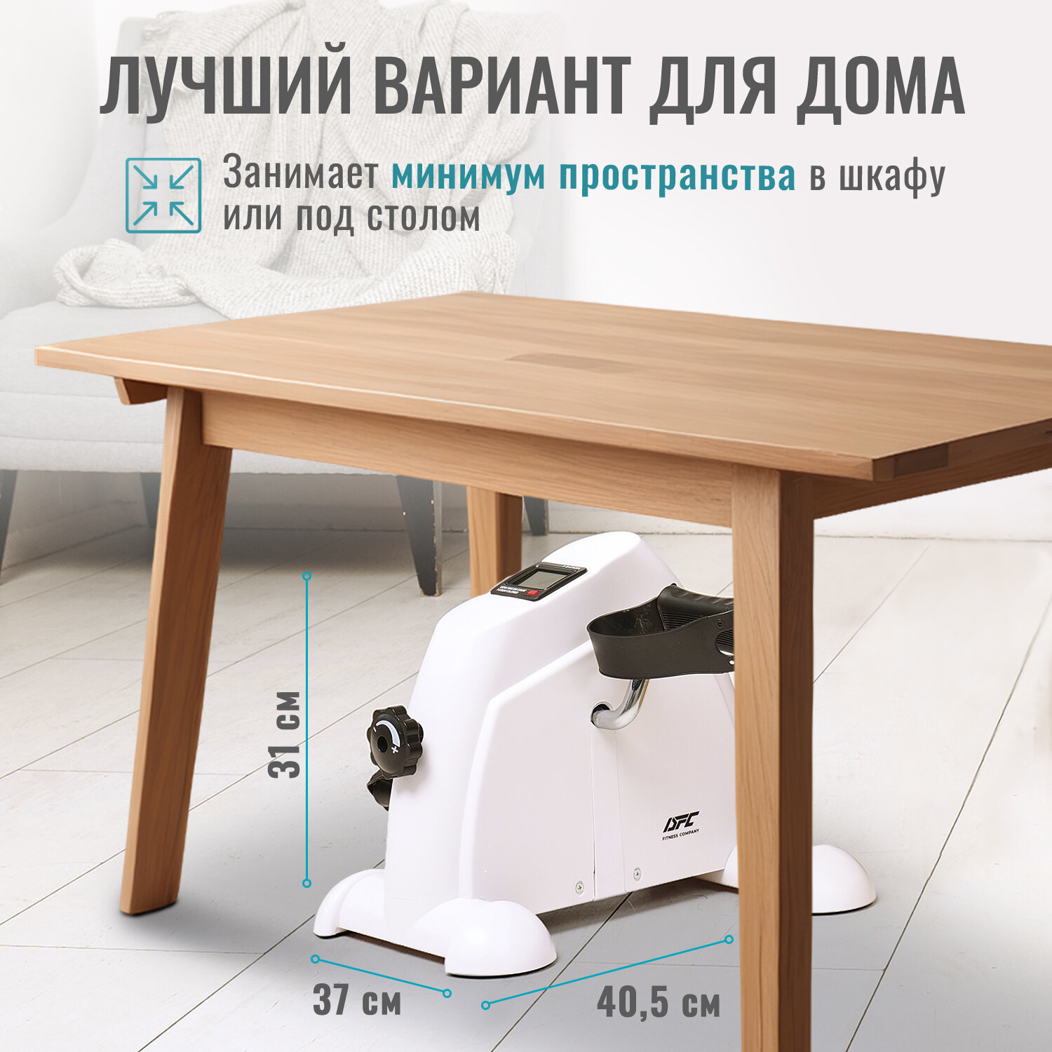 Купить Мини велотренажер DFC B12 Белый/вес пользователя 100 кг/для рук и ног/портативный кардиотренажер/велосипед для дома
