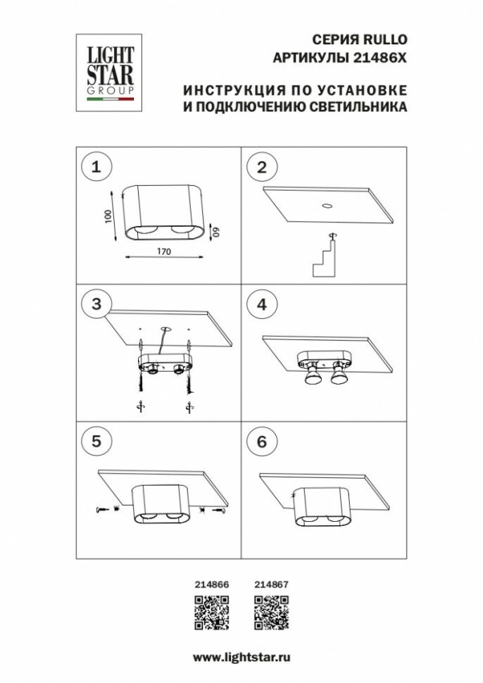 Накладной светильник Lightstar Rullo 214866, GU10, 100Вт, кол-во ламп:2шт., Белый