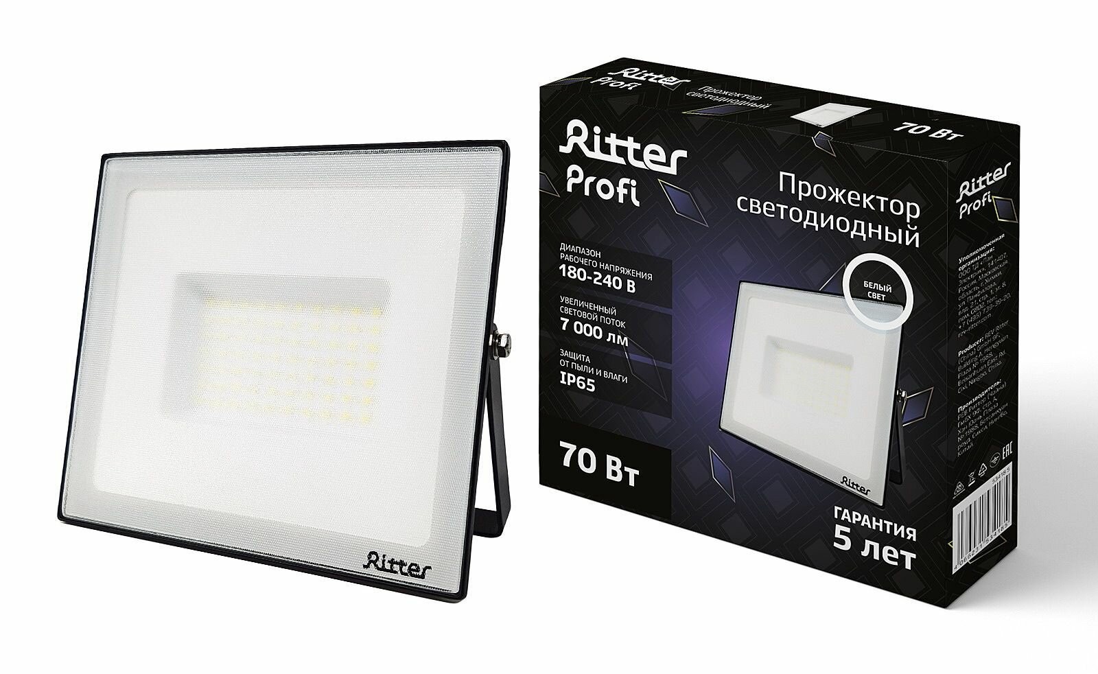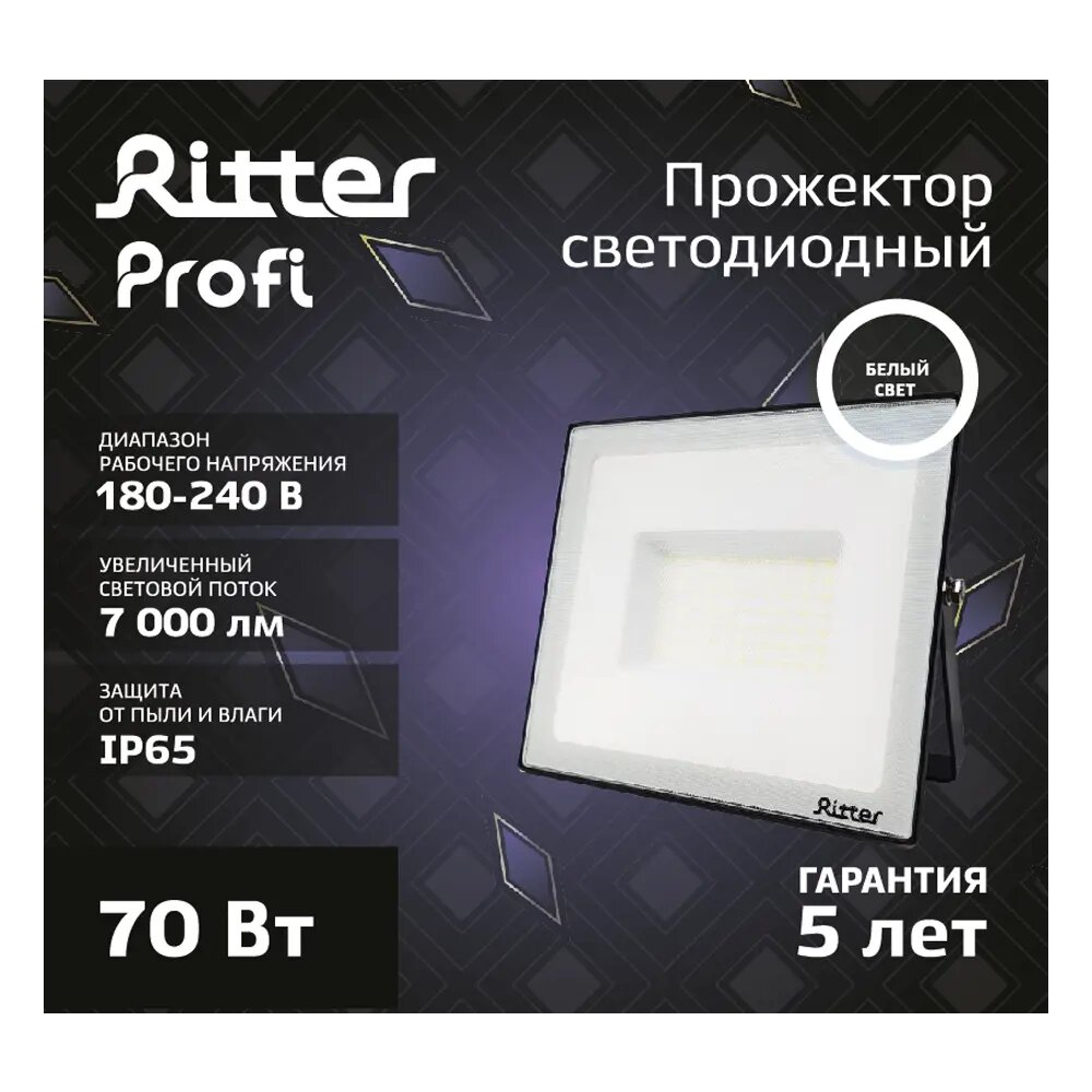 Прожектор светодиодный уличный Ritter Profi 53418 5 70 Вт 7000 Лм 180-240В нейтральный белый свет 4000К IP65 черный интересное: