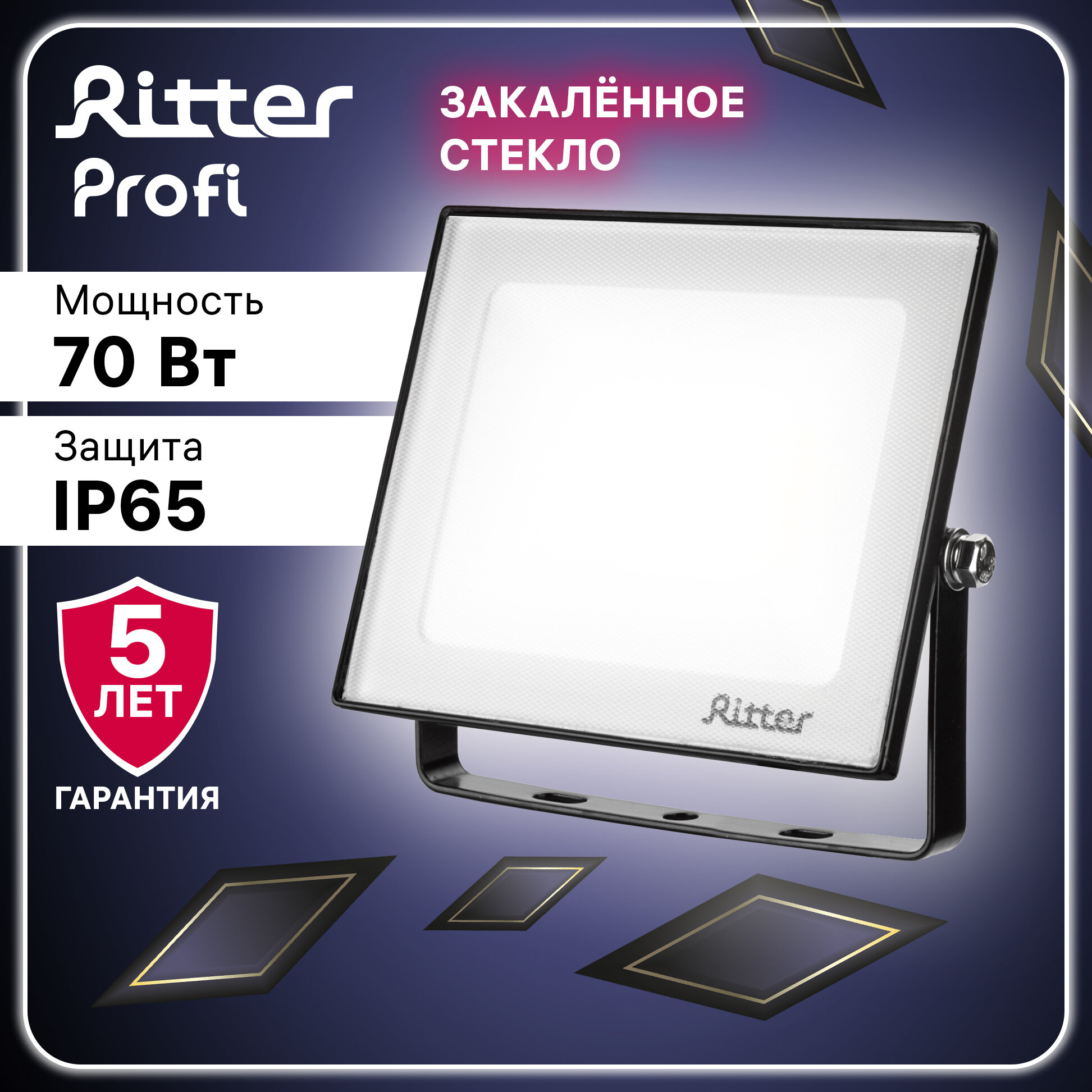 RITTER Прожектор светодиодный серия PROFI 230В 70 Вт 4000К 7000Лм IP65 черный 53418 5
