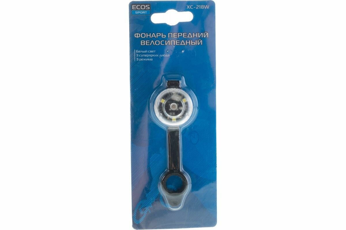 Фонарь ECOS XC-218W, передний, LED, 3 режима, влагозащищенный, батарейки